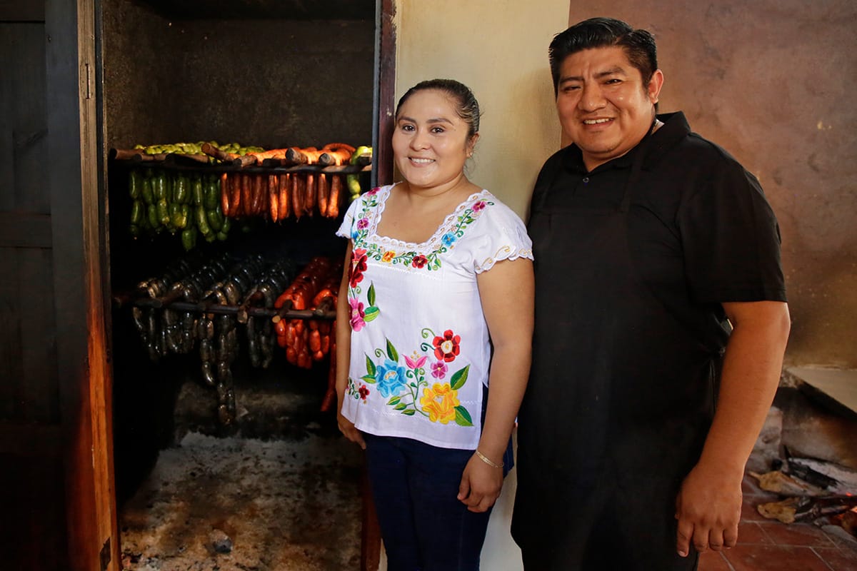 Tocamos a la puerta; Carlos Canché y su esposa nos recibieron y amablemente nos enseñaron los secretos de su cocina y de su ahumador para que hiciéramos las fotografías.