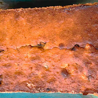 Coloque la mezcla en el molde previamente engrasado, golpee ligeramente el molde sobre una superficie firme para eliminar burbujas de la mezcla.