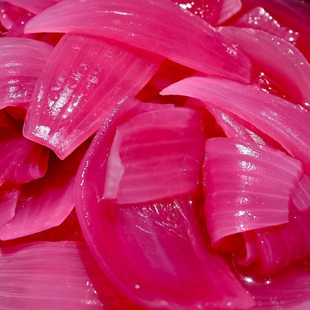 Después de la marinada, la cebolla debe tener un color rosa intenso y textura suave. Use esta cebolla para acompañar el ➥Pok Chuk de Valladolid.